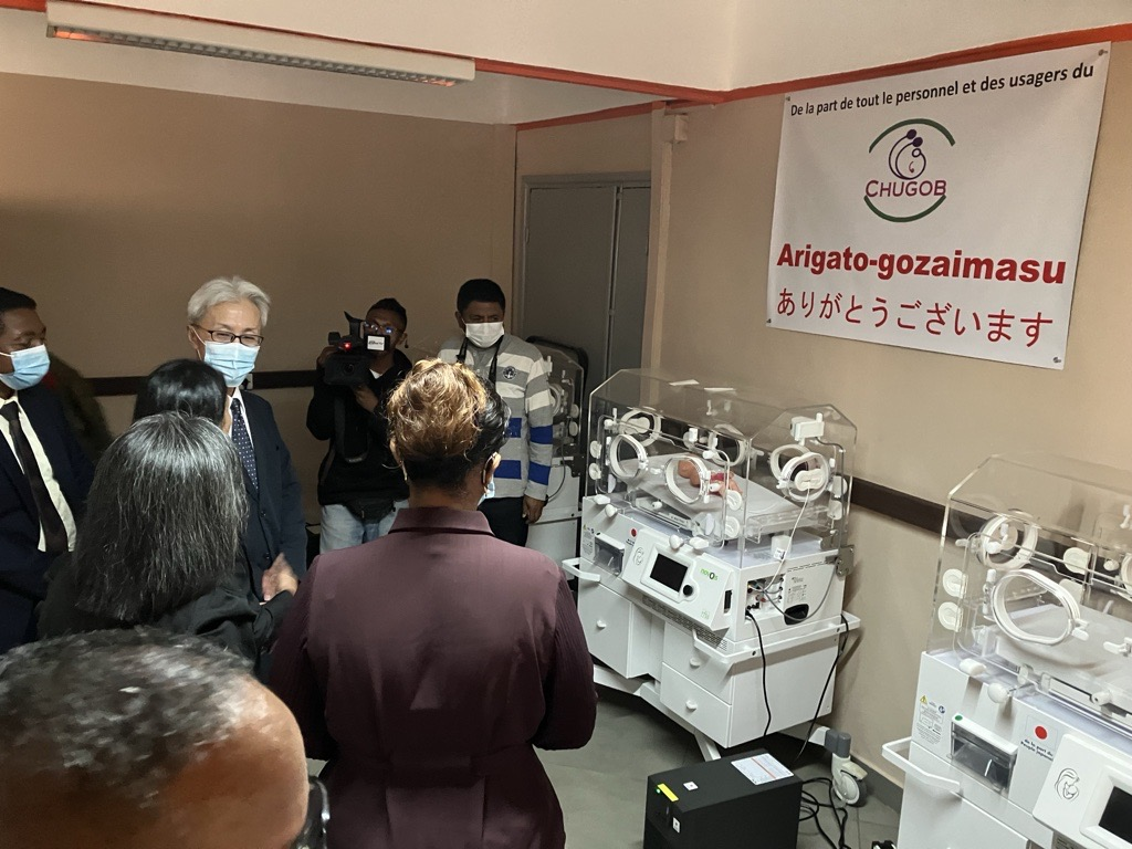 この協力では、アンタナナリボ市内に所在する国立ベフェラタナナ婦人科・産科大学病院(CHU GOB)に対し、医療機材一式(麻酔器1台、保育器3台、無停電電源装置(UPS)4台)が供与されました。