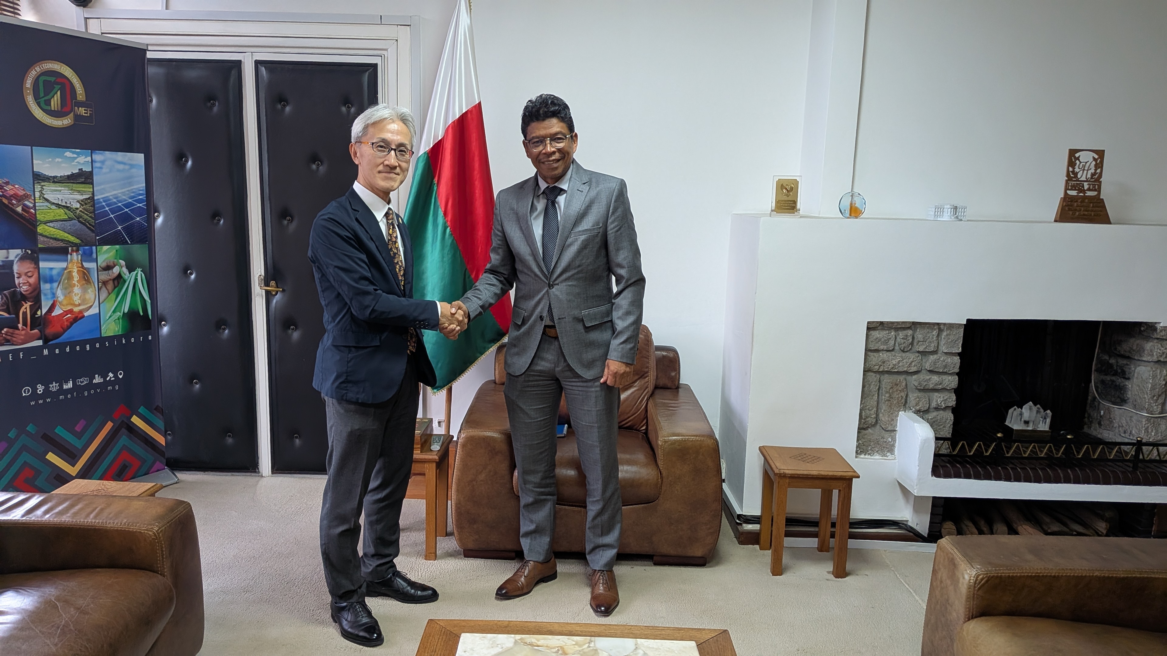 2026年2月6日、戸島大使は、ラミアリソン経済・財政大臣(S.E.Dr. RAMIARISON Herinjatovo Aimé)と面会し、意見交換を行いました。