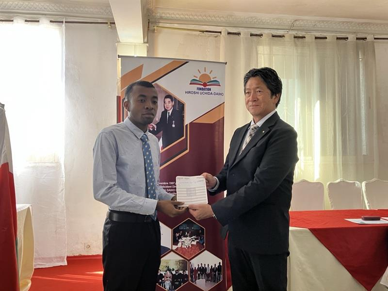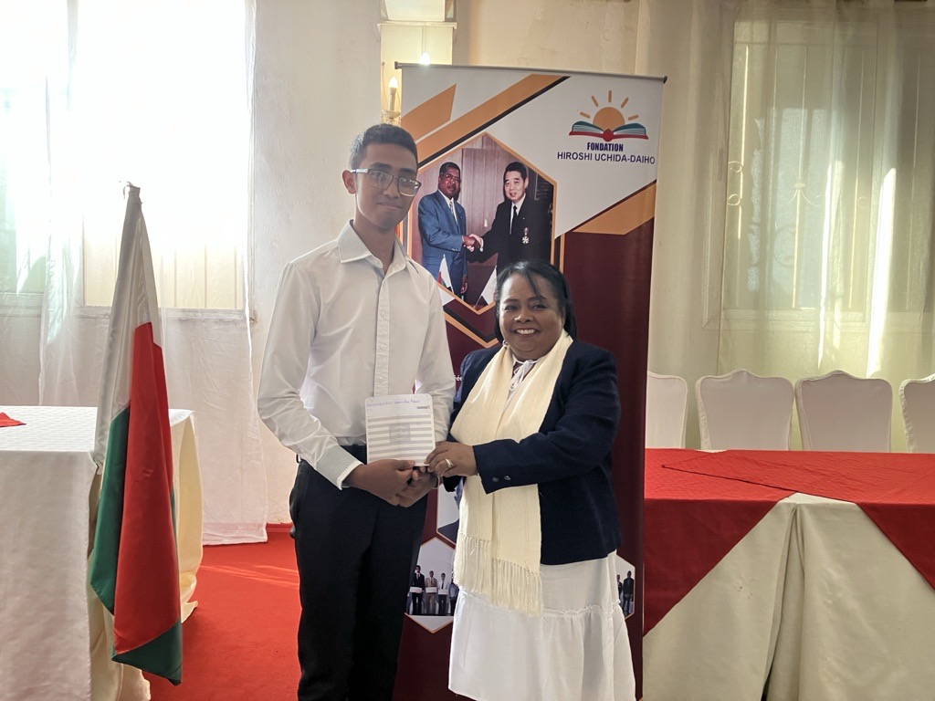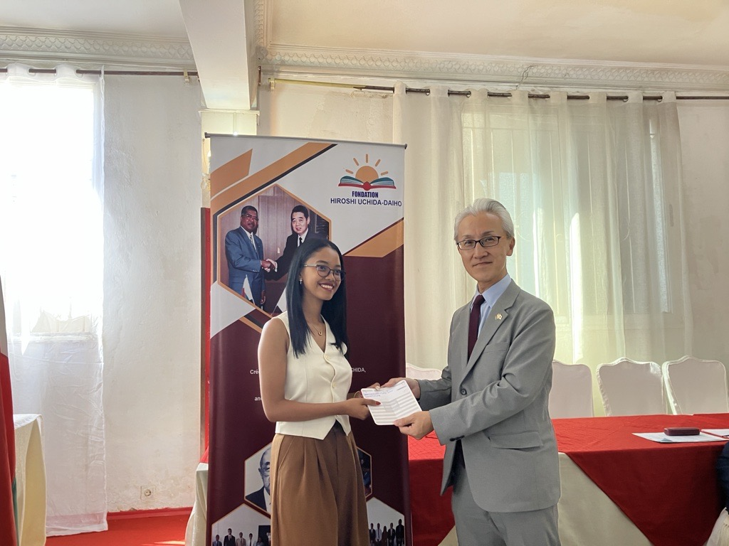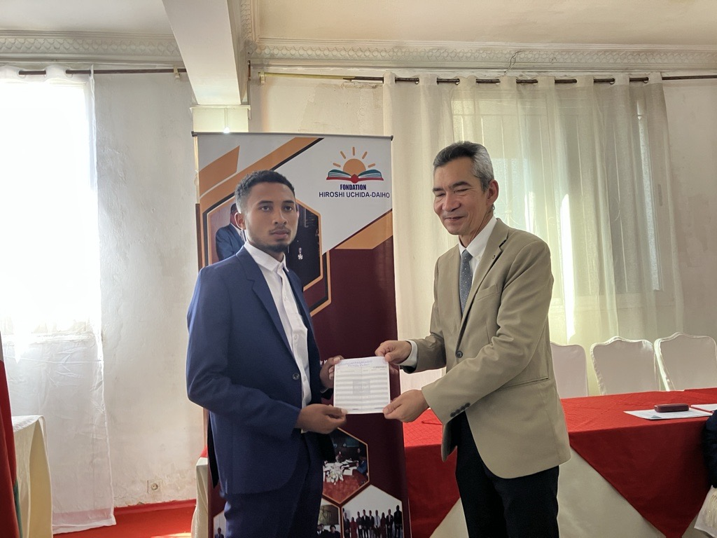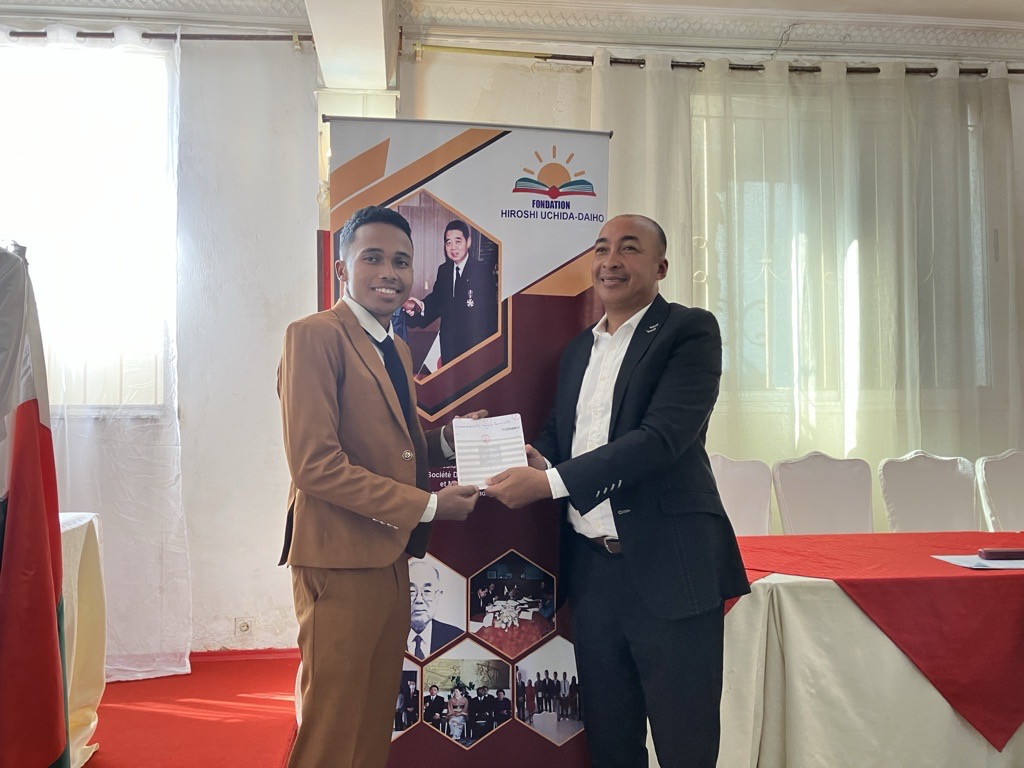 Le 25 mars, l’Ambassadeur Tojima a prononcé une allocution lors de la cérémonie de remise des bourses 2026 de la Fondation Hiroshi UCHIDA‑Daiho, fondée en 1997 par M. Kotaro UCHIDA, alors président de Daiho Construction. Plus qu’un appui financier, ce programme est un symbole vivant de l’amitié entre le Japon et Madagascar.