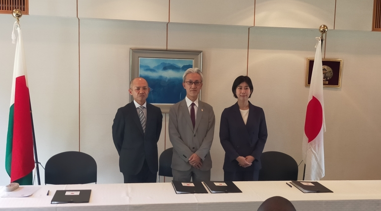 more VISA VISA Frais de visas Étudier au Japon Présentations du Japon Study in Japan Japan scholarship Japanese Language Education Centers Textbook of Japanese Language Japanese e-Learning Cérémonie de remise des bourses de la Fondation Hiroshi UCHIDA‑Daiho Cérémonie de remise de riz du Projet d’Aide Alimentaire Inauguration partielle du Projet d’Extension du Port de Toamasina Cérémonie de signature des accords de don en faveur des ONGs japonaises AMDA et Save the Children Japan pour les projets à Madagascar Réception à l’occasion du 66ème anniversaire de Sa Majesté l’Empereur du Japon Remise de la décoration japonaise « Ordre du Soleil Levant, Étoile d’Or en sautoir » à Monsieur RANAIVOJAONA Hery Mandimbisoa Visite de courtoisie auprès de S.E.M. le Général de Division RAZAFITOMBO Maminirina Ely, Ministre des Forces Armées Visite de courtoisie auprès de S.E.M.CHAN KIT WAYE Jaco, Ministre de la Pêche et de l’Économie bleue Journée du Film d’Animation Japonais Cérémonie de remise de broyeurs électriques de cosses de riz à Antsirabe Visite de courtoisie auprès de S.E.M. Herinjatovo Aimé RAMIARISON, Ministre de l’Économie et des Finances Présentation des lettres de créance par l'Ambassadeur TOJIMA à S.E.M. Michaël RANDRIANIRINA, Président de la Refondation de la République de Madagascar Remise de la copie figurée de ses lettres de créance par l'Ambassadeur TOJIMA Cérémonie de présentation des vœux 2026 Cérémonie d’inauguration officielle du « Projet de réhabilitation du laboratoire de langue japonaise à l’Université d’Antananarivo » Actualités go to list 2026/3/25 Cérémonie de remise des bourses de la Fondation Hiroshi UCHIDA‑Daiho 2026/3/23 Cérémonie de remise de riz du Projet d’Aide Alimentaire 2026/3/21 Inauguration partielle du Projet d’Extension du Port de Toamasina 2026/3/16 Cérémonie de signature des accords de don en faveur des ONGs japonaises AMDA et Save the Children Japan pour les projets à Madagascar 2026/3/6 Réception à l’occasion du 66ème anniversaire de Sa Majesté l’Empereur du Japon Remise de la décoration japonaise « Ordre du Soleil Levant, Étoile d’Or en sautoir » à Monsieur RANAIVOJAONA Hery Mandimbisoa 2026/3/5 Visite de courtoisie auprès de S.E.M. le Général de Division RAZAFITOMBO Maminirina Ely, Ministre des Forces Armées 2026/3/4 Visite de courtoisie auprès de S.E.M.CHAN KIT WAYE Jaco, Ministre de la Pêche et de l’Économie bleue 2026/2/28 Journée du Film d’Animation Japonais 2026/2/20 Aide d’urgence à la République de Madagascar en réponse aux dégâts causés par le cyclone Gezani. go to list Ambassadeur duJapon à Madagascar TOJIMA Hitoshi Ambassadeur CV [168KB] SNS close